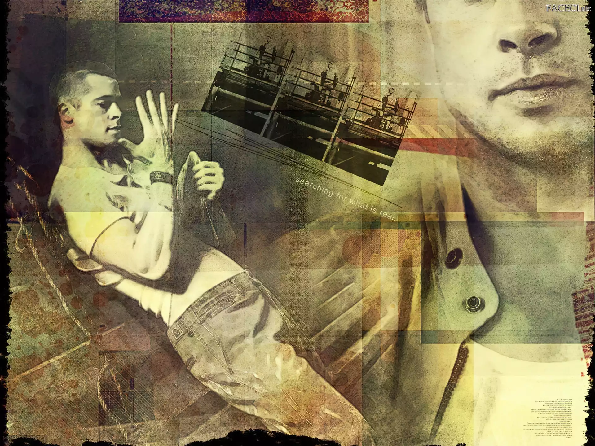 +, Brad Pitt, Tatuaż kapelusz, Brad Pitt, twarz ciemna koszula, Dominic Monaghan